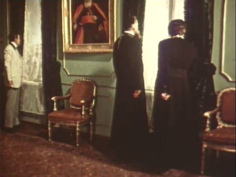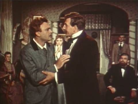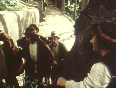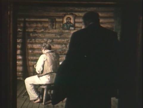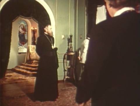 А ось друг дитинства Івана Франка, нині семінарист, а згодом – святий отець, ховає розп'яття під стіл, щоб у центр столу поставити пляшчину оковитої (Сковорода у фільмі 1958 року знаходив плєшку для бурсаків за іконою Христа).