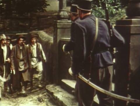 Традиційна радянська карикатурка на пацюків-шпиків у найкращих традиціях Чезаре Ломброзо нагадує, що пропаганда – це завжди казочка для маляток. Прекрасний новий світ, де піонерський пафос настільки бездонний, що на слові "убивці" відразу з'являється портрет цісаря. Після суду за розповсюдження соціалістичних ідей, де його ще запитають про переклад книги "Капітал" на хлопську мову (українські гіпстерочки нині вже готують тритомне видання), Франка босим конвоюють до рідних Нагуєвичів. І це вже такий перебор з тими карами єгипетськими на шляху, що пустельні випробування Ісуса видаватимуться курортним релаксом.