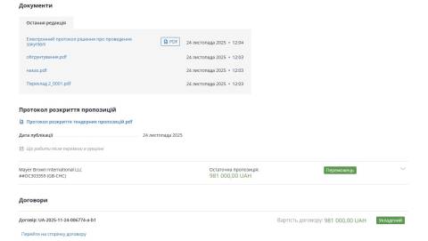 ЛКП "Зелене місто" 24 листопада цього року провело тендер у системі ProZorro й уклало угоду з юридичною компанією Mayer Brown International LLc (Велика Британія) про послуги з адвокатської діяльності на 981 тис. грн (20 тисяч євро).