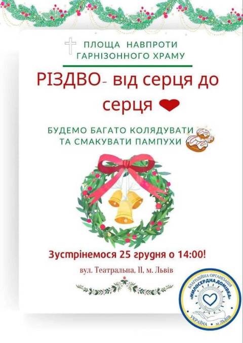 У неділю, 25 грудня, о 14.00 год львів'ян та гостей міста запрошують на акцію-коляду "Різдво – від серця до серця".