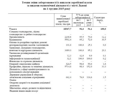 Відтак, станом на 1 грудня цього року у Львові заборгованість із виплати заробітної плати становила 18 347,7 тис грн. З них активні підприємства заборгували 10,4 млн грн, неактивні підприємства – 4,1 млн грн, а підприємства-банкрути – 3,8 млн грн.