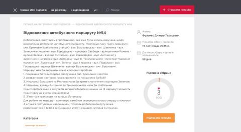Дмитро Фульмес 19 листопада зареєстрував на порталі е-петицій Львівської міської ради петицію з проханням відновити міський автобусний маршрут №54.