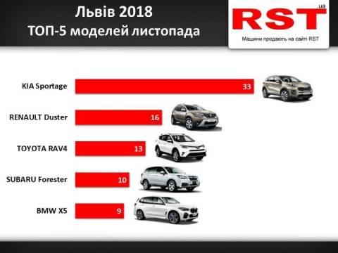 Минулого місяця львів’яни найчастіше купували машини, які входять у ціновий діапазон від 17 до 35 тисяч доларів. Їх частка у регіоні склала 48%, а середня вартість кожного зареєстрованого авто становила 32 тисячі. Загальна сума витрат за місяць у листопаді склала 11 мільйонів доларів, – повідомляє сайт з продажу автомобілів RST.ua.