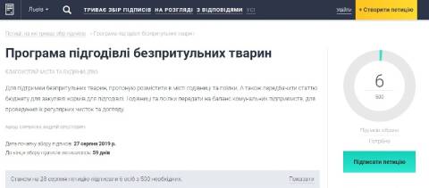 Наразі петиція набрала 6 голосів, а до кінця збору підписів залишилось ще 59 днів.