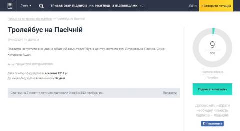 4 жовтня, на порталі е-петицій Андрій Гунц зареєстрував петицію з вимогою запустити тролейбус на вулицю Пасічну.