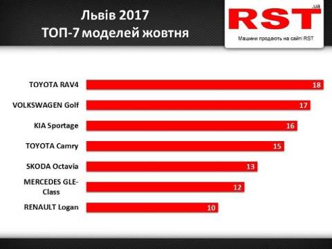 Найпопулярнішою маркою у Львові стала Toyota. Якщо розглядати по моделях, то лідирує Toyota RAV4. Їх продали 18 авто. На другому Volkswagen Golf, а замикає трійку бестселерів – Kia Sportage.
