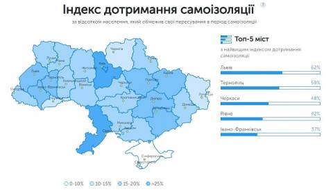 Український мобільний оператор Київстар на своєму веб-сайті запустив інтерактивну онлайн-карту. Вона показує індекс самоізоляції по кожній з українських областей під час пандемії коронавірусу COVID-19.