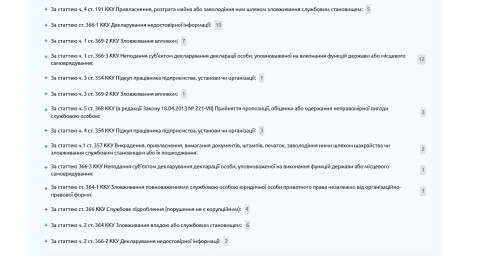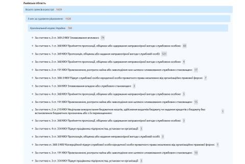 Зокрема, на Львівщині всього зареєстровано 1639 записів, з них 1528 – за судовими рішеннями. Ще 769 записів – за статтями Кримінального кодексу України.
