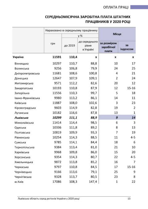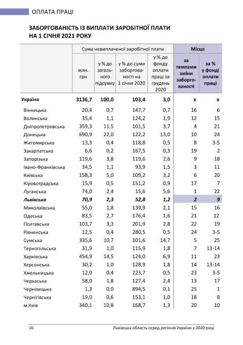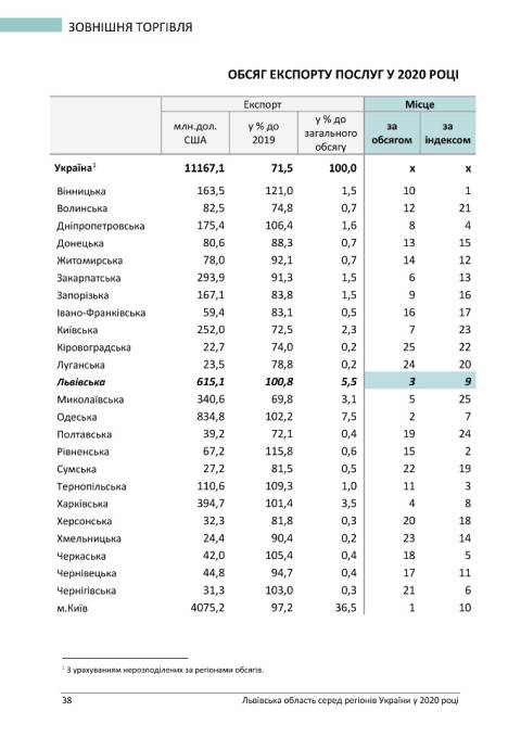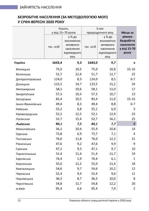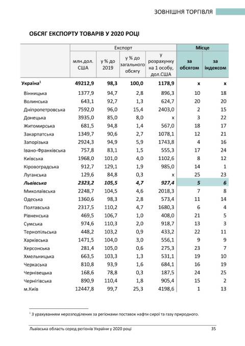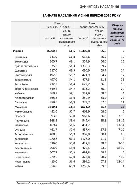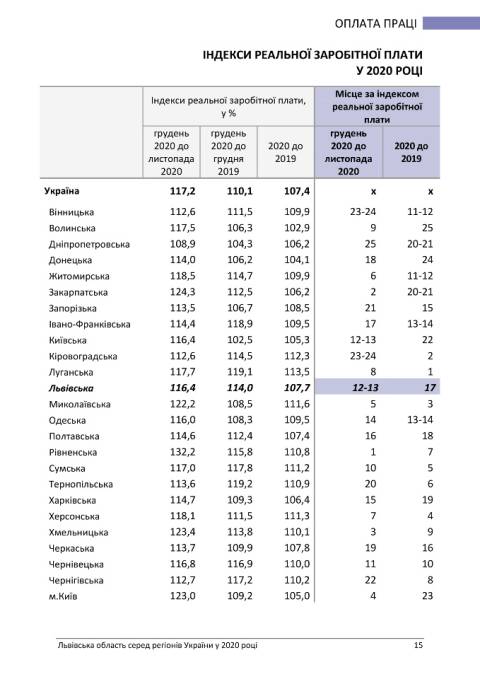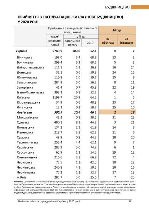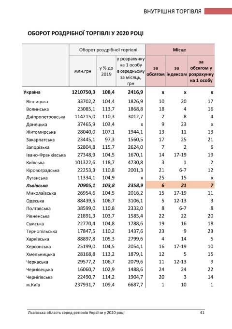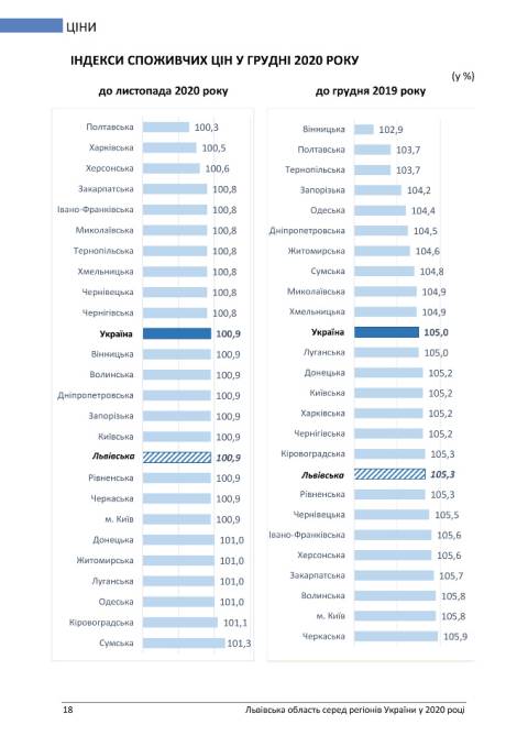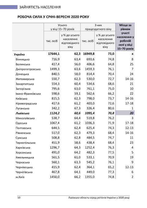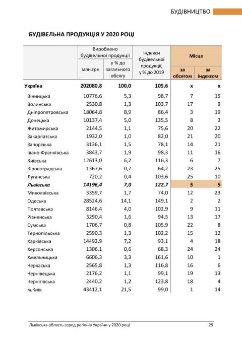 Головне управління статистики у Львівській області опублікувало статистичний бюлетень з рейтингом регіонів України у 2020 році.