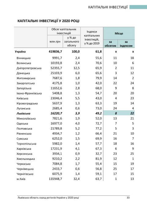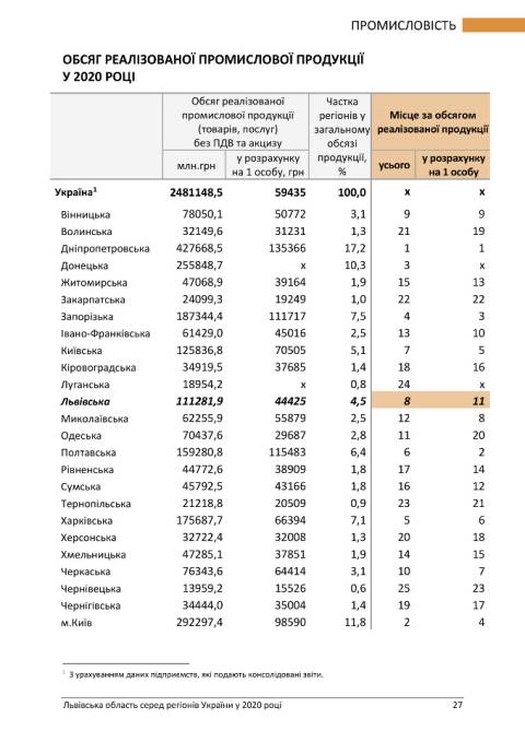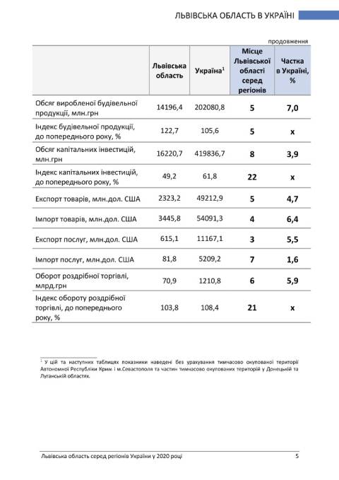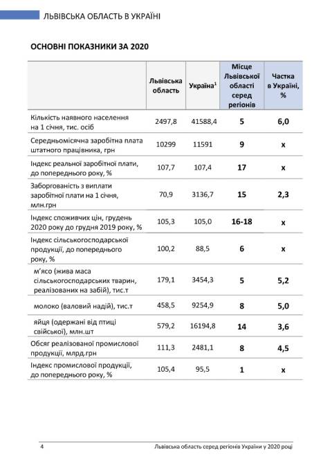У статистичному бюлетені подаються дані, які дають змогу оцінити внесок Львівської області в економіку України та її місце поміж регіонів.