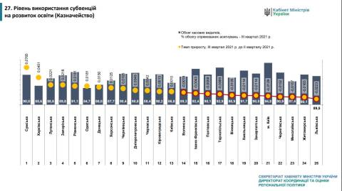 За третій квартал 2021 року Львівська область опинилася на останньому місці серед областей України за рівнем використання субвенцій на розвиток освіти.