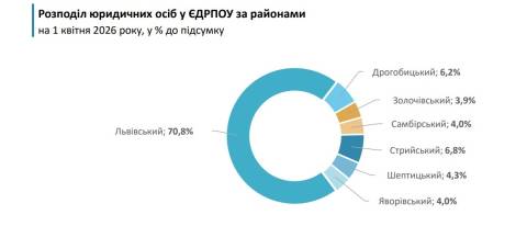 Більше двох третин (70,8% або 63,2 тисячі суб’єктів ЄДРПОУ було зосереджено у Львівському районі.