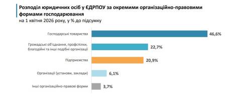 Станом на 1 квітня у ЄДРПОУ також зареєстрували 3 210 відокремлені підрозділи юридичних осіб (на 3,5% більше, порівняно з 1 квітня 2025 року). Кількість осіб, які зареєструвалися як фізичні особи-підприємці, становила 137,6 тисячі, що на 7,8% більше, ніж на 1 квітня 2025 року. Частка області за кількістю фізичних осіб-підприємців в Україні становила 7,6% (3 місце серед регіонів).