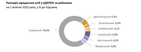 Понад дві третини юридичних осіб області знаходяться у Львівському районі (70,6% або 61,9 тисячі).
