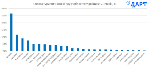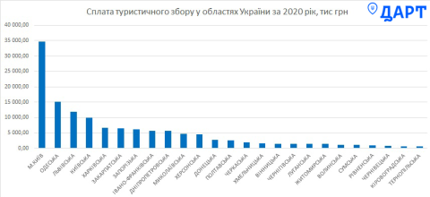 До першої десятки із сплати туристичного збору входять: Одеська, Харківська, Закарпатська, Запорізька, Івано-Франківська, Дніпропетровська та Миколаївська області.