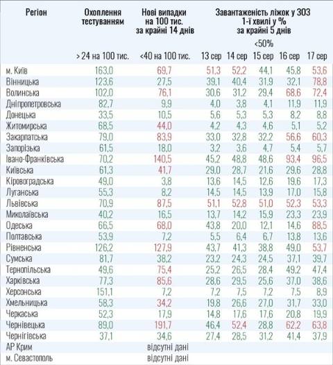 Зазначимо, Міністерство охорони здоров'я аналізує три показники: завантаженість ліжок, охоплення тестуванням та нові випадки інфікування.