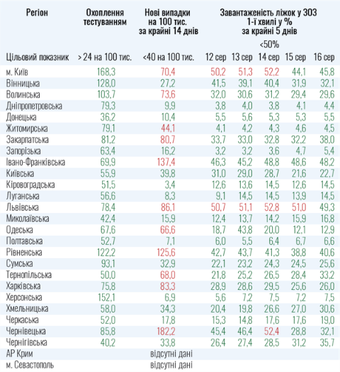 Зазначимо, Міністерство охорони здоров'я аналізує три показники: завантаженість ліжок, охоплення тестуванням та нові випадки інфікування.
