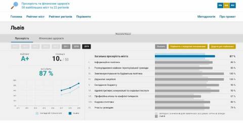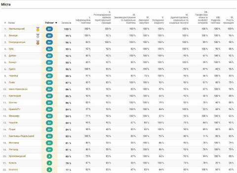 Крім цього, у рейтингу прозорості 50-ти найбільших міст України найвищу кількість балів отримали Хмельницький, Вінниця і Сєвєродонецьк. Львів опинився на 9 місці із 87%.
