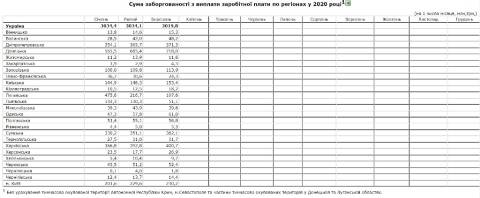 Найменше заборгували своїм працівникам підприємства у Чернівецькій (1,8 млн грн), Хмельницькій (9,7 млн грн), Рівненській (5,3 млн грн) та Закарпатській областях (4,3 млн грн).