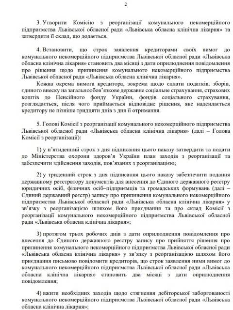 Правонаступником усіх майнових і немайнових прав та обов’язків Львівської обласної клінічної лікарні став львівський медуніверситет. Наразі він має здійснити такі заходи: