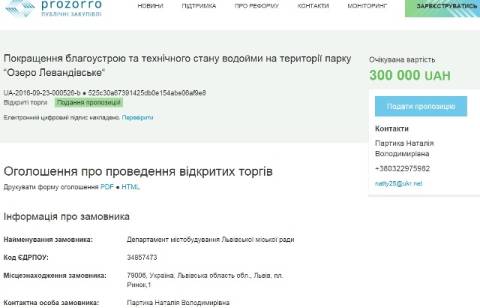 Відтак, департамент містобудування Львівської міської ради проводить закупівлю на покращення благоустрою та технічного стану водойми на території парку «Левандівське озеро».