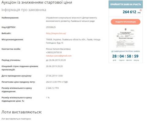 Початкова ціна приміщення, виставленого на аукціон, який мав відбутися 28 травня, становила 529 224 грн, однак тепер її зменшили до 264 612 грн. В управлінні комунальної власності пояснили, що приміщення не придбали під час першого етапу, відтак, повторний аукціон оголошується зі зниженням стартової ціни на 50%.