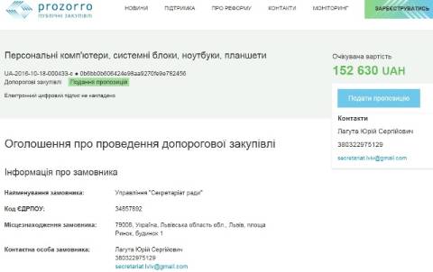 Львівська міськрада оголосила аукціон на придбання 13 комп'ютерів.