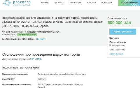 Відтак, департамент містобудування Львівської міської ради проводить закупівлю саджанців для висадження на території парків, лісопарків Львова.