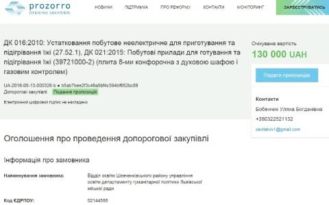 Відтак, відділ освіти відділ освіти Шевченківського району управління освіти департаменту гуманітарної політики Львівської міської ради проводить закупівлю на побутові прилади для готування та підігрівання їжі.