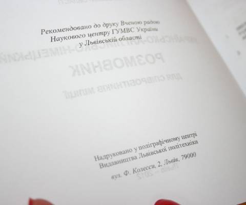Розмовник рекомендовано до друку Вченою радою Наукового центру ГУМВС України у Львівській області. Надруковано у поліграфічному центрі Видавництва Львівської політехніки. Тираж не вказаний.