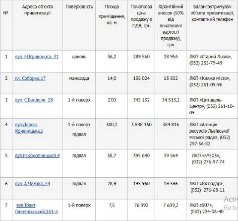 У Львові продають 7 комунальних приміщень, загальною площею майже 500 кв м.