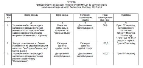 Сьогодні, 2 березня, виконавчий комітет Львівської міської ради затвердив перелік природоохоронних заходів, які фінансуватимуться коштом загального фонду міського бюджету Львова у 2018 році.
