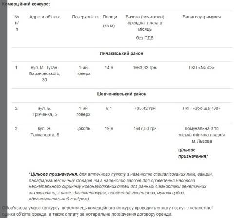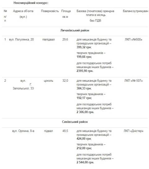 Управління комунальної власності Львівської міської ради оголосило комерційний та некомерційний конкурси з метою надання в оренду вільних нежитлових приміщень, які перебувають у комунальній власності.