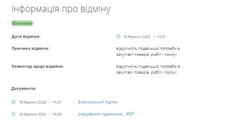 Проте у середині березня закупівлю скасували через "відсутність подальшої потреби".