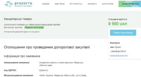 Відтак, управління майном спільної власності Львівської обласної ради проводить закупівлю на 157 штук канцелярських товарів.
