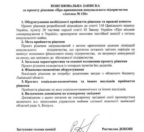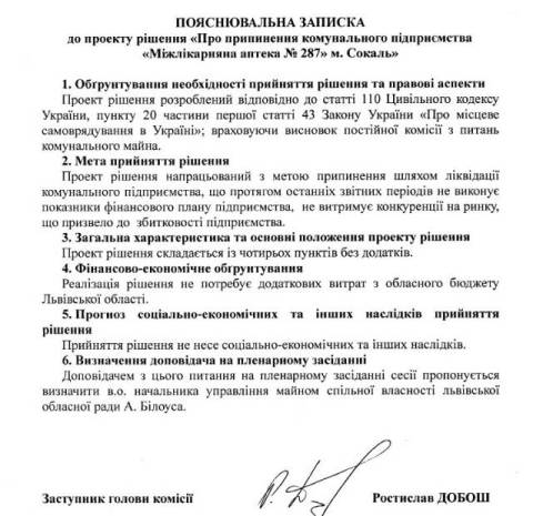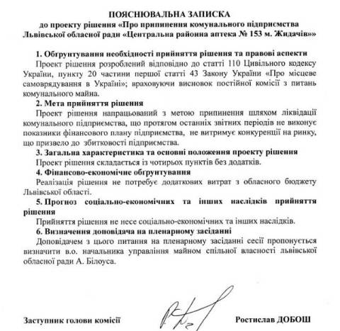 Згідно з документом, усі ці аптеки є збитковими: протягом останніх звітних періодів вони не виконують фінансові показники та не витримують конкуренції на ринку.
