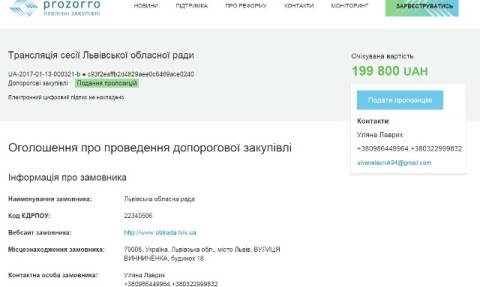Відтак, Львівська обласна рада проводить закупівлю на відеотрансляції сесії обласної ради, що проходять в адміністративному будинку на вул. Вииниченка, 18.