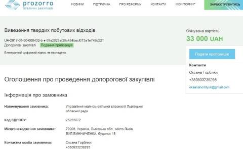 Це було опубліковано на сайті електронних закупівель ProZorro.