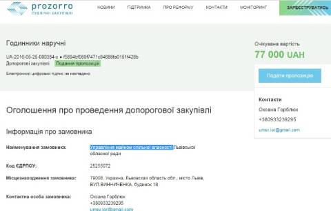 Відтак, управління майном спільної власності Львівської обласної ради проводить закупівлю на 70 штук наручних годинників.