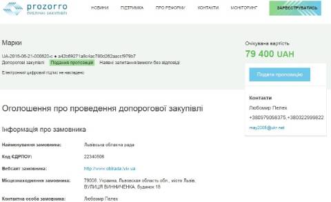 Відтак, Львівська обласна рада проводить закупівлю на 48 400 штук поштових марок, номіналом 40 копійок, дві гривні та три гривні.