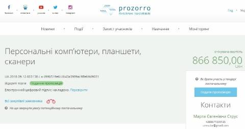 Очікувана вартість закупівлі – 866 850 грн, а кінцевий термін надання послуг – 31 грудня 2018 року.