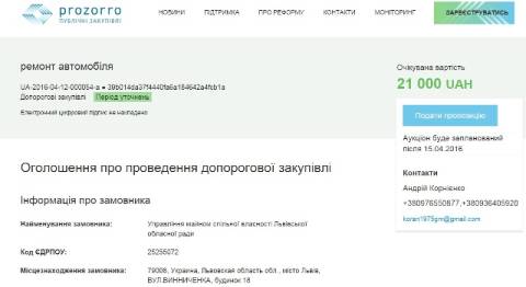 Відтак, управління майном спільної власності Львівської обласної ради проводить закупівлю на ремонт авто ГАЗ-31105.