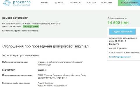 Відтак, управління майном спільної власності Львівської обласної ради проводить закупівлю на ремонт авто Kia Cerato.