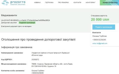 Це було опубліковано на сайті електронних закупівель ProZorro.