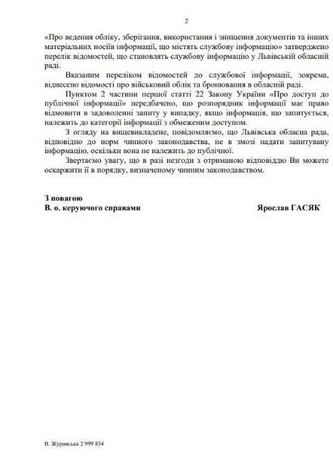 інформацію, оскільки вона не належить до публічної" – йдеться у відповіді на запит.