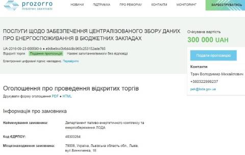 Відтак, департамент паливо-енергетичного комплексу та енергозбереження Львівської ОДА проводить закупівлю на послуги щодо забезпечення централізованого збору про енергоспоживання в бюджетних закладах.