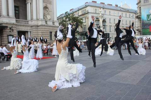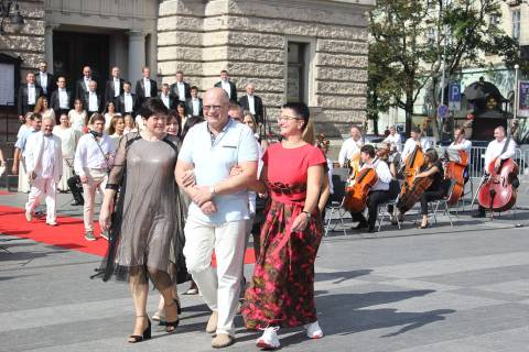 Творча група Львівської національної опери пройшла червоною доріжкою, розгорнутою перед входом в театр, а для присутніх відбувся святковий концерт з найвідомішими творами оперного мистецтва.