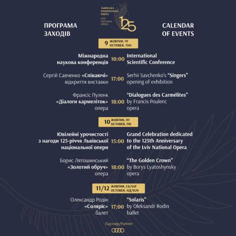 Ювілейні події відкриє Міжнародна наукова конференція "Оперний театр у час історичних викликів: історична ретроспектива, сучасні меседжі" (9 жовтня, 10:00).