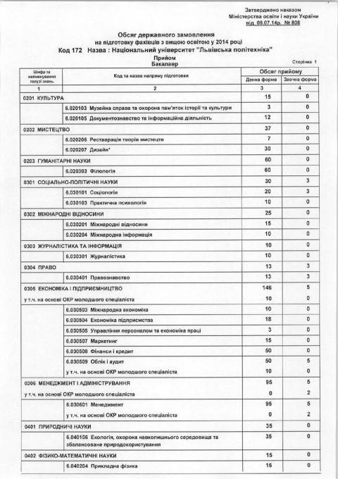 Переглянути повний обсяг державних замовлень за освітньо-кваліфікаційним рівнем бакалавр на 2014 рік для "Львівської політехніки" можна у додатках.