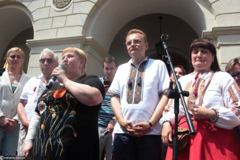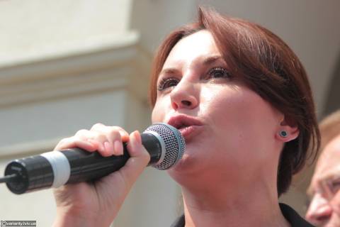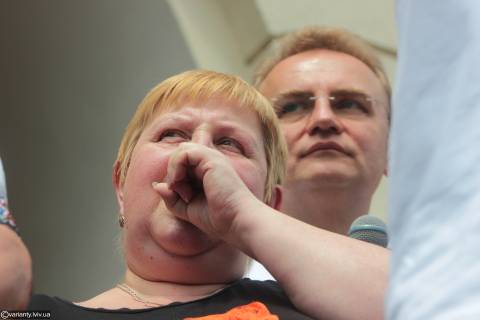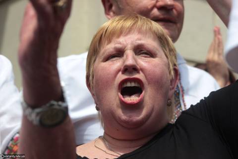 Саме до її рота Садовий засовує найбільшу єресь, а тому вона так блискавично щезає безслідно після спічу. Садовий елегантно переводить усі стрілки на свою базарну берегиню (як і всі в ДНР та ЛНР), адже Україну він любить понад усе, а Чванова наразі вовком виє, аж так хоче роздряпати пазурами ненависні їй пики. Вона пахала, як Вітя Янукович, і старалася, як його Людмила. Вона вимагає перевиборів, оскільки злочинна влада Порошенка вбиває її та її любих львів'ян. Кольори її одягу підозріло колорадні (чорне з помаранчем). Маразм у її голові про нову політичну силу, яка думає про людей (Самопоміч, ха-ха-ха) надто великий. А ще у неї сережки з зірочками. Після нещодавнього випадку у Києві з футболкою СРСР цього буде достатньо, щоб львівська поліція трішечки декомунізувала її вушка?